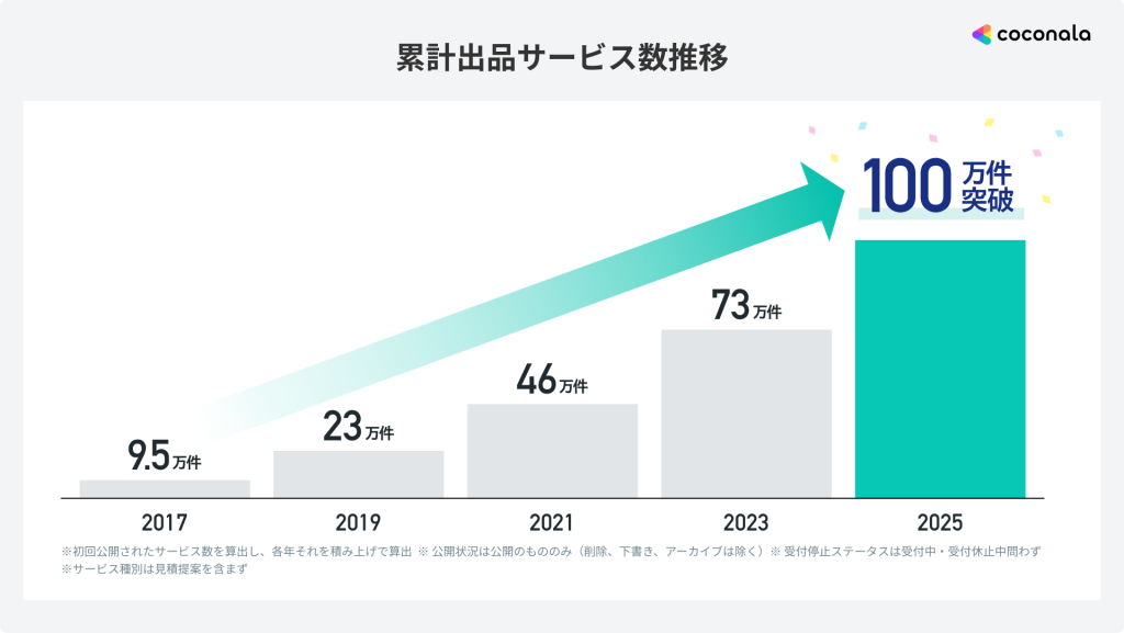 サービス開始から約13年で、累計出品サービス数100万件を突破
