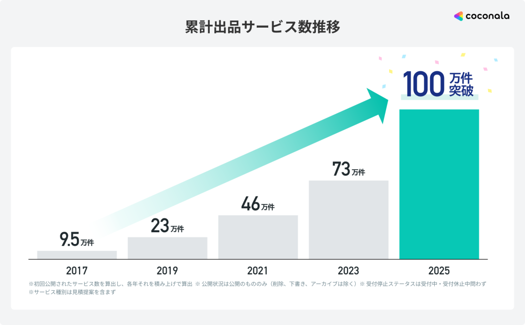サービス開始から約13年で、累計出品サービス数100万件を突破