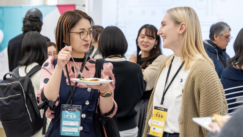 イベントのハイライトの一つは、カテゴリの垣根を越えた交流です。知り合い同士はもちろん、普段接することのない他のカテゴリで出品されている方やプロダクト開発に携わっている社員などと交流ができるのも交流イベントならではの醍醐味。日々の活動で困っていることや上手な活用方法、新たな出品スキルの可能性が話し合われたほか、より良いサービスにするための利用者の声も社員へ直接伝えられました。今後の活動のヒントと、未来の「ココナラスキルマーケット」を作るための具体的な知恵の「橋渡し」が行われました。