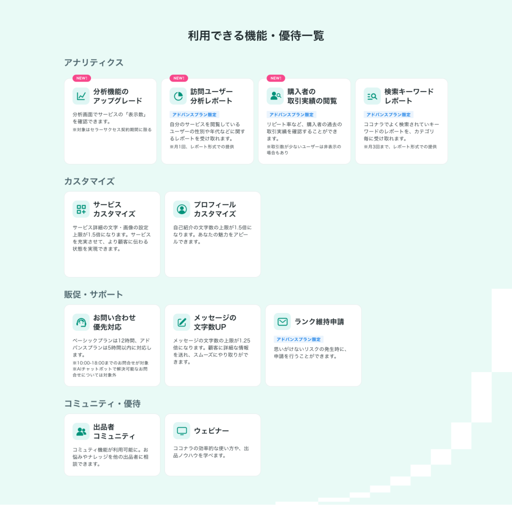 このような背景から、当社は出品者により長く・安心して活躍していただくことを目指し、より「売れる」ためのサポートを行うことを目的に2025年7月に『セラーサポート』を開始し、プロフィールや出品サービスページの文字数・画像数の増加やコミュニティ機能を新設しました。