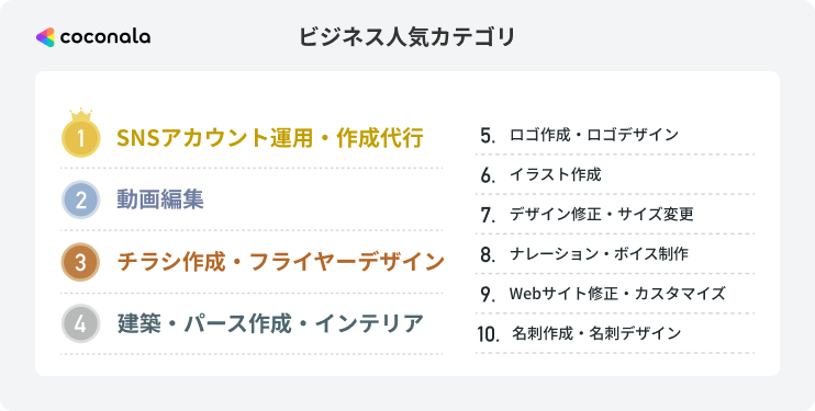 2.ココナラスキルマーケット:ビジネス人気カテゴリ